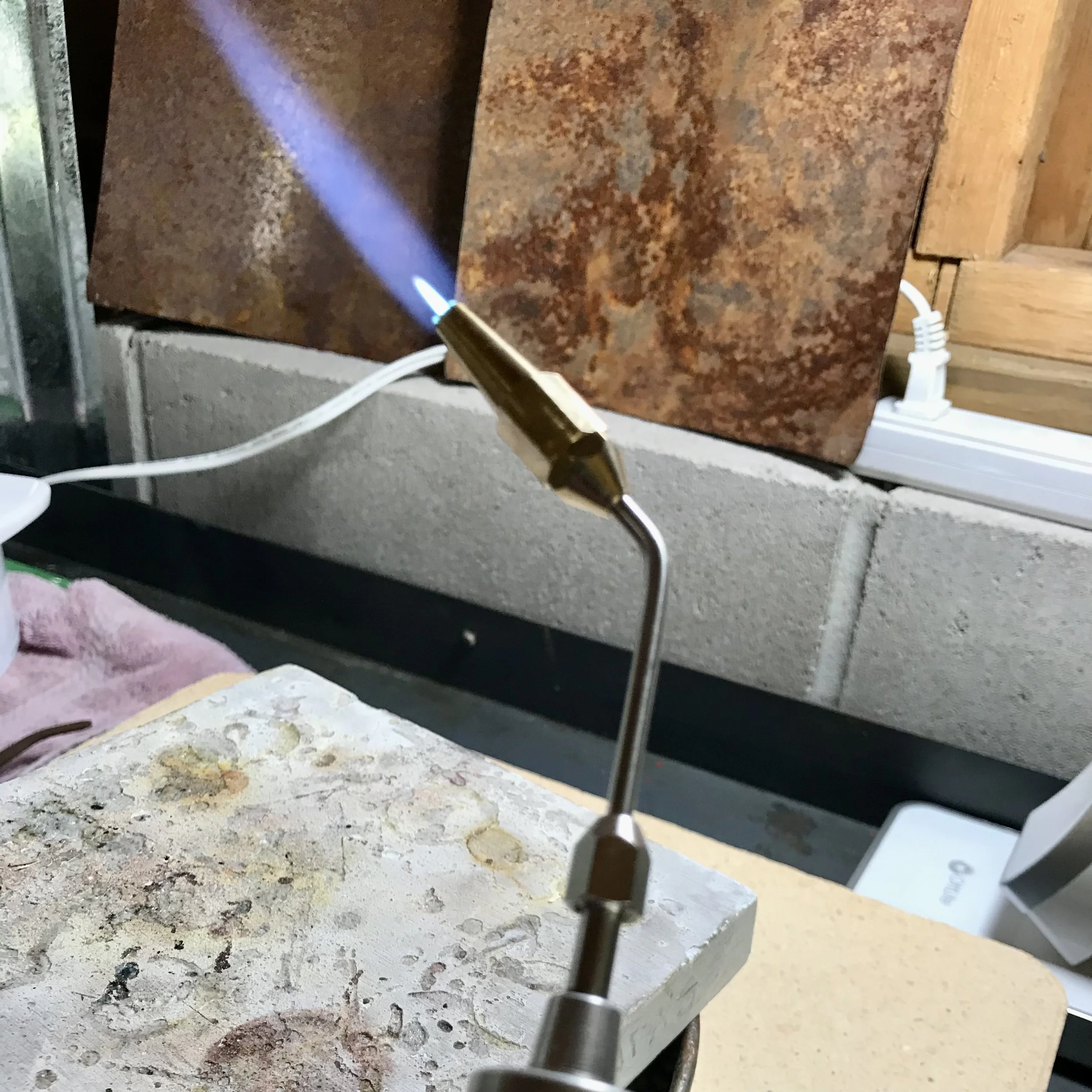 Image: A custom sterling silver brooch on the soldering bench commissioned by a collector.